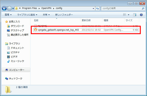 ダウンロードした接続設定ファイル (.ovpn) を OpenVPN の config フォルダにインストールする必要があります。